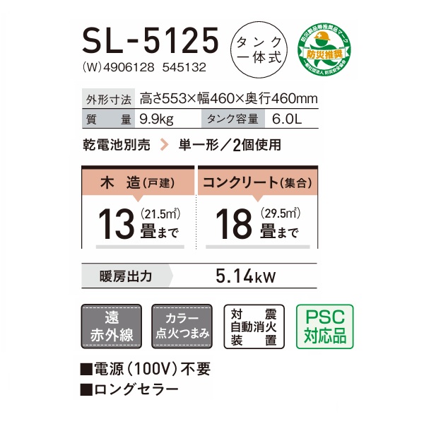 コロナ SL-5125(W) ポータブル石油ストーブ 対流形 SLシリーズ レトロスタイル 木造13畳/コンクリート18畳