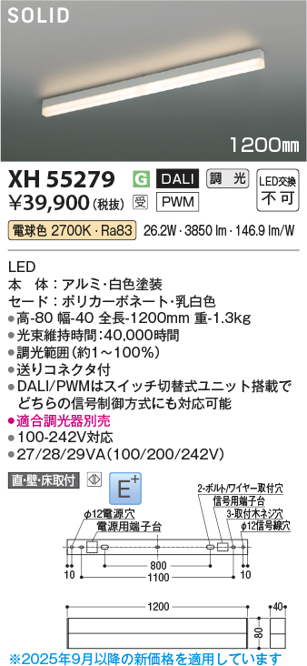 コイズミ照明 XH55279 ベースライト 1200mmタイプ 調光(調光器別売) 電球色 SOLID E+ ホワイト 受注生産品 [§]