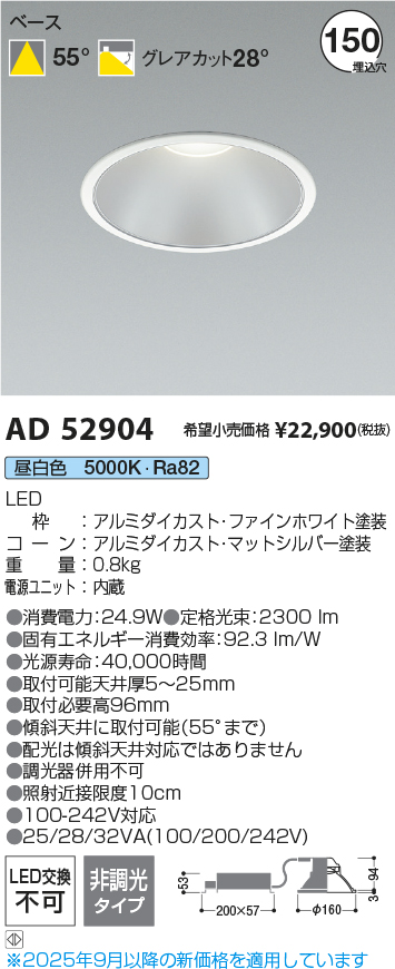 コイズミ照明 AD52904 ダウンライト φ150 非調光 昼白色 M形 電源一体型 ファインホワイト