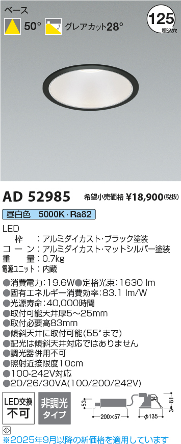 コイズミ照明 AD52985 ダウンライト φ125 非調光 昼白色 M形 電源一体型 ブラック