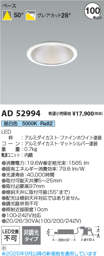 コイズミ照明 AD52994 ダウンライト φ100 非調光 昼白色 M形 電源一体型 ファインホワイト