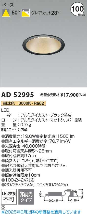 コイズミ照明 AD52995 ダウンライト φ100 非調光 電球色 M形 電源一体型 ブラック [戻る]