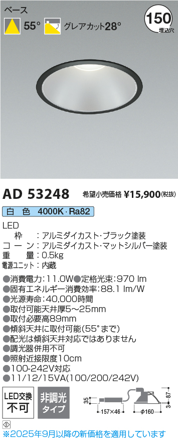 コイズミ照明 AD53248 ダウンライト φ150 非調光 白色 M形 電源一体型 ブラック [戻る]