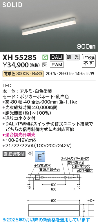 コイズミ照明 XH55285 ベースライト 900mmタイプ 調光(調光器別売) 電球色 SOLID E+ ホワイト 受注生産品 [§]