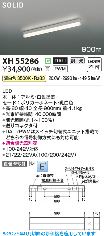 コイズミ照明 XH55286 ベースライト 900mmタイプ 調光(調光器別売) 温白色 SOLID E+ ホワイト 受注生産品 [§]
