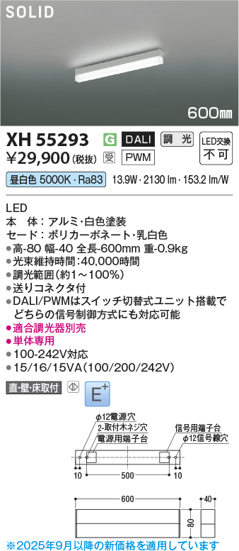 コイズミ照明 XH55293 ベースライト 600mmタイプ 調光(調光器別売) 昼白色 SOLID E+ ホワイト 受注生産品 [§]