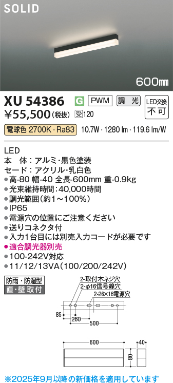 コイズミ照明 XU54386 ベースライト 600mmタイプ 調光(調光器別売) 電球色 SOLID 屋外用 防雨・防湿型 ブラック 受注生産品 [§]