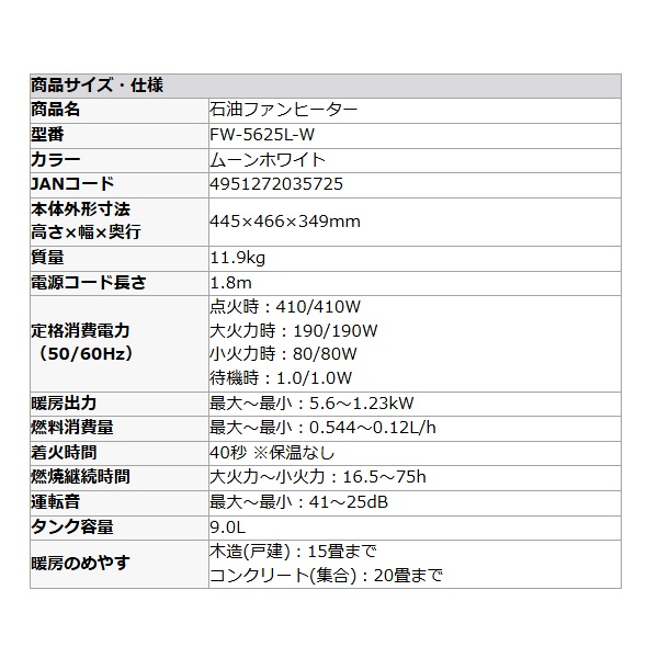 ダイニチ Dainichi FW-5625L-W 石油ファンヒーター ムーンホワイト 木造15畳 コンクリート20畳 ℃℃