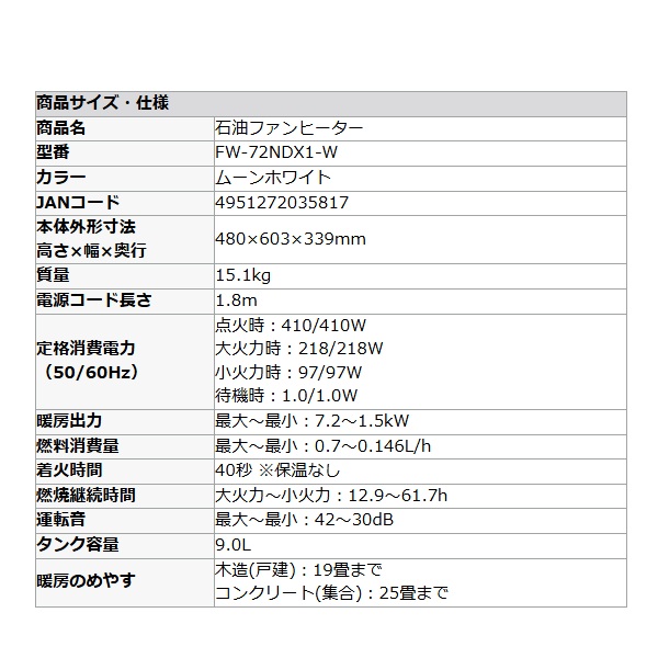 ダイニチ Dainichi FW-72NDX1-W 石油ファンヒーター ムーンホワイト ハイパワー 暖房器具 木造19畳 コンクリート25畳 ℃℃ [戻る]