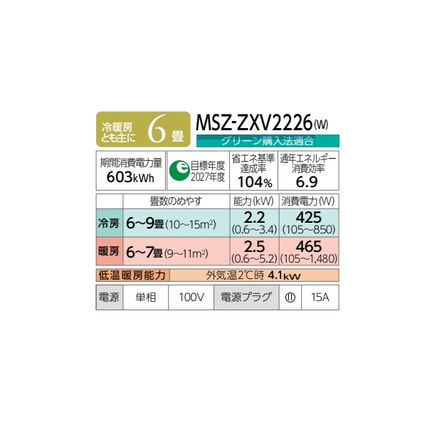 三菱 MSZ-ZXV2226(W) エアコン 6畳 ルームエアコン Zシリーズ 単相100V/15A 6畳程度 ピュアホワイト (MSZ-ZXV2225-Wの後継品) ♪♭ [戻る]