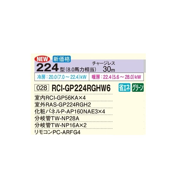 日立 RCI-GP224RGHW6 業務用エアコン てんかせ4方向 同時フォー 省エネの達人プレミアム 224型 8.0馬力 三相200V ♪