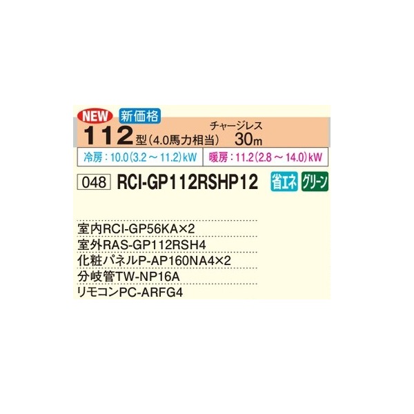 日立 RCI-GP112RSHP12 業務用エアコン てんかせ4方向 同時ツイン 省エネの達人 112型 4.0馬力 三相200V ♪
