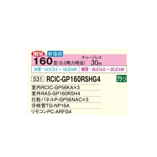 日立 RCIC-GP160RSHG4 業務用エアコン てんかせJr. 同時トリプル 省エネの達人 160型 6.0馬力 三相200V ♪