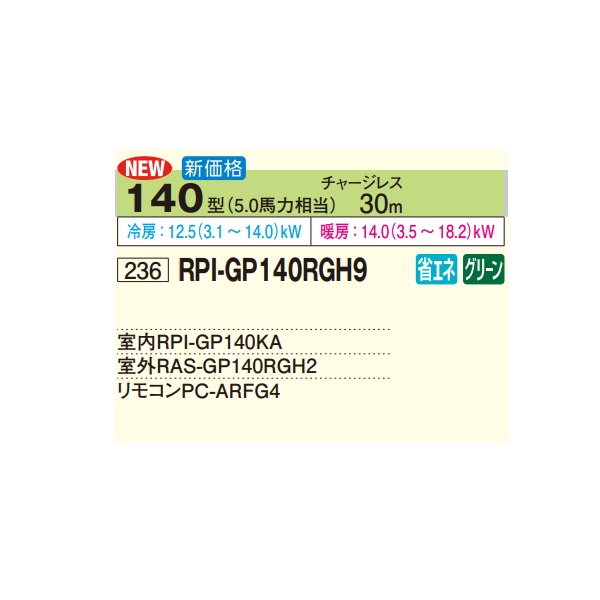 日立 RPI-GP140RGH9 業務用エアコン てんうめ シングル 高静圧型 省エネの達人プレミアム 140型 5.0馬力 三相200V ♪