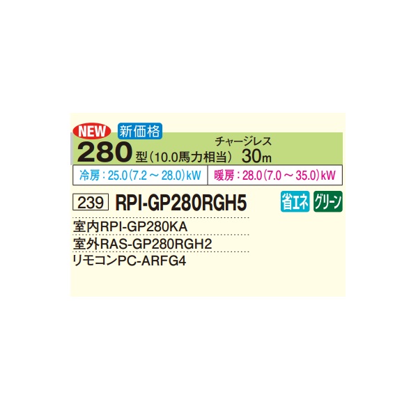 日立 RPI-GP280RGH5 業務用エアコン てんうめ シングル 高静圧型 省エネの達人プレミアム 280型 10.0馬力 三相200V ♪