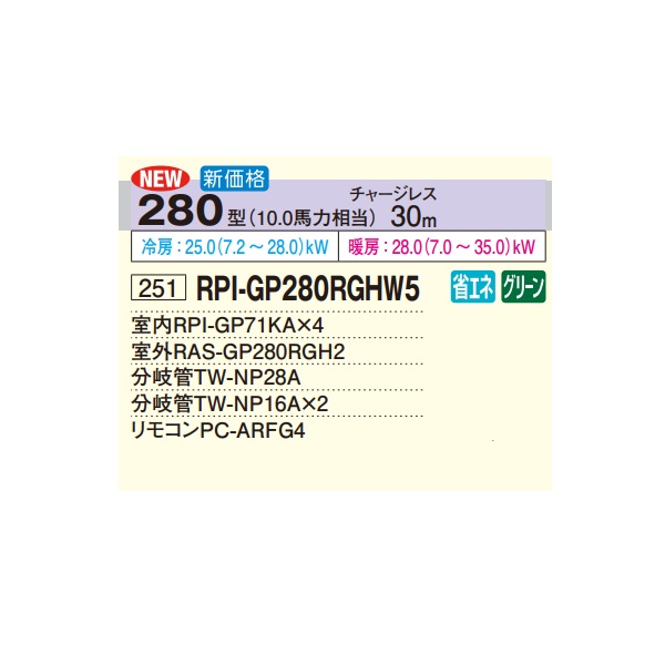 日立 RPI-GP280RGHW5 業務用エアコン てんうめ 同時フォー 高静圧型 省エネの達人プレミアム 280型 10.0馬力 三相200V ♪ [戻る]