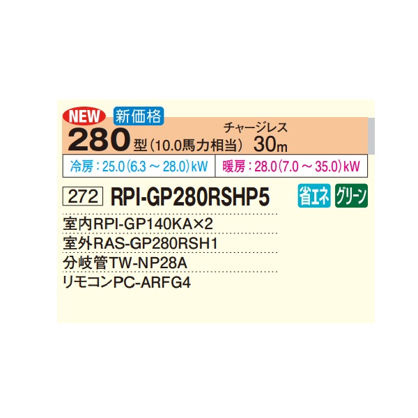 日立 RPI-GP280RSHP5 業務用エアコン てんうめ 同時ツイン 高静圧型 省エネの達人 280型 10.0馬力 三相200V ♪ [戻る]