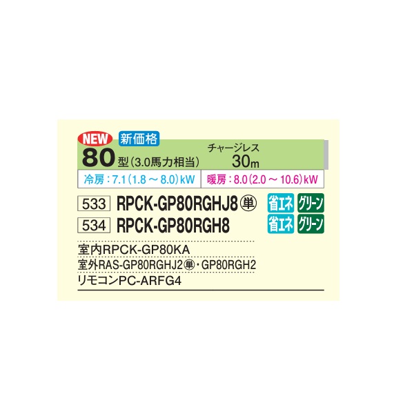 日立 RPCK-GP80RGH8 業務用エアコン 厨房用てんつり シングル 省エネの達人プレミアム 80型 3.0馬力 三相200V ♪