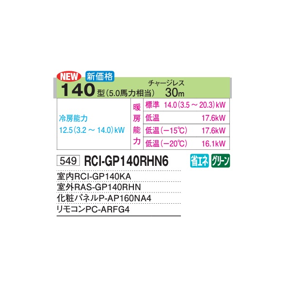 日立 RCI-GP140RHN6 業務用エアコン てんかせ4方向 シングル 寒さ知らず 寒冷地用 140型 5.0馬力 三相200V ♪