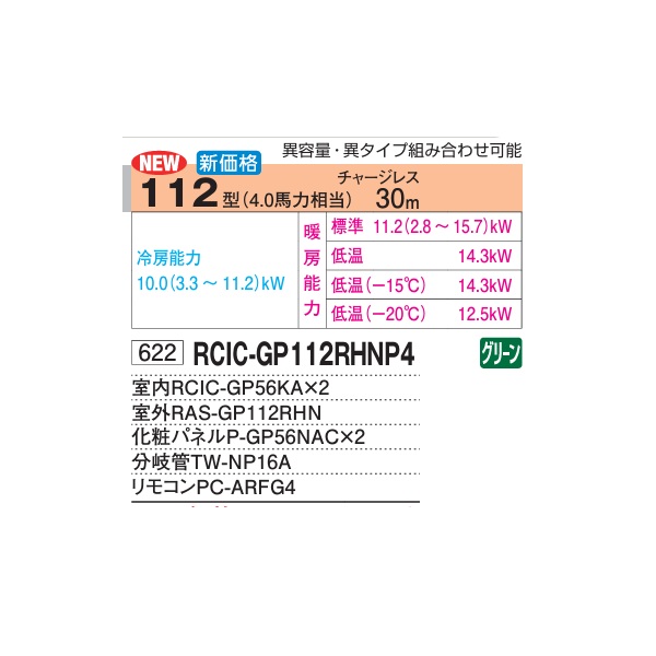 日立 RCIC-GP112RHNP4 業務用エアコン てんかせJr. 同時ツイン 寒さ知らず 寒冷地用 112型 4.0馬力 三相200V ♪