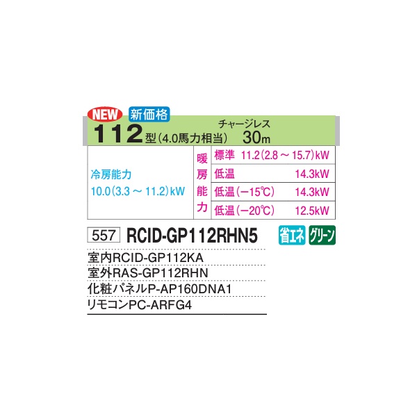日立 RCID-GP112RHN5 業務用エアコン てんかせ2方向 シングル 寒さ知らず 寒冷地用 112型 4.0馬力 三相200V ♪