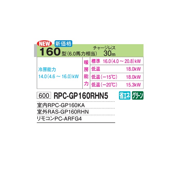日立 RPC-GP160RHN5 業務用エアコン てんつり シングル 寒さ知らず 寒冷地用 160型 6.0馬力 三相200V ♪