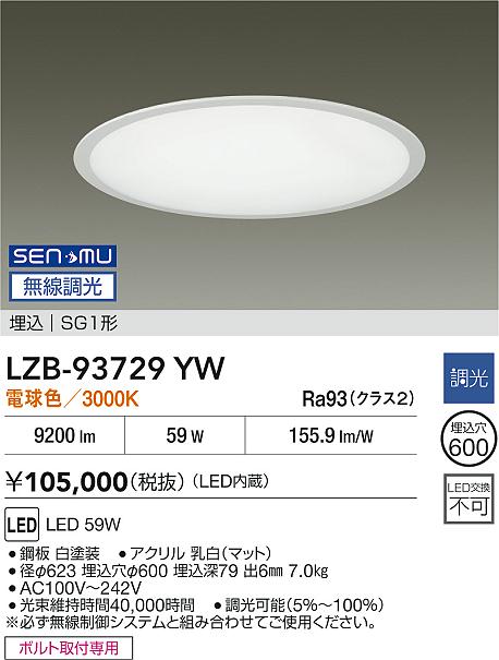 大光電機(DAIKO) LZB-93729YW ベースライト φ埋込穴600タイプ 無線 調光(調光器別売) 電源内臓 電球色 LED ラウンド ホワイト
