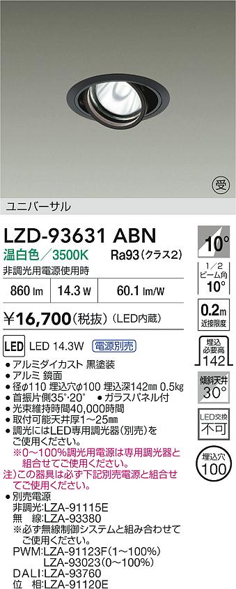 大光電機(DAIKO) LZD-93631ABN ダウンライト φ埋込穴100 電源別売 温白色 LED ユニバーサル ブラック 受注生産品[§]