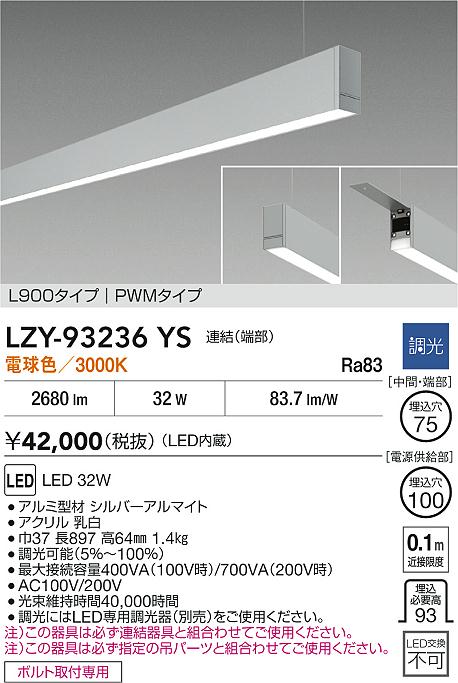 大光電機(DAIKO) LZY-93236YS ベースライト L900タイプ 調光(調光器別売) 電球色 LED 吊下げ形 下配光 シルバーアルマイト