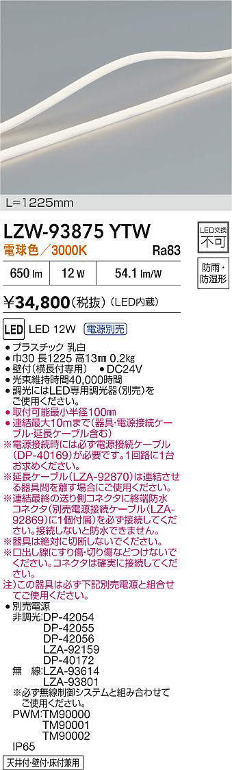 大光電機(DAIKO) LZW-93875YTW 間接照明 L1230タイプ 電源別売 電球色 LED トップビュータイプ ドットレス 防雨・防湿形 [戻る]