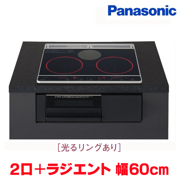 『在庫あり』 パナソニック KZ-J1H6AK IHクッキングヒーター 2口IH+ラジエント Jシリーズ 幅60cm 光るリングあり ブラック/ブラック ☆2