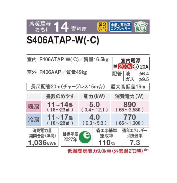 ダイキン S406ATAP-W エアコン 14畳 ルームエアコン AXシリーズ 単相200V 20A 14畳程度 ホワイト (S405ATAP-W 後継品) ♪ [戻る]