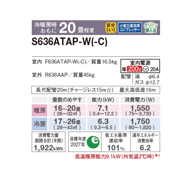 ダイキン S636ATAP-C エアコン 20畳 ルームエアコン AXシリーズ 単相200V 20A 20畳程度 ベージュ (S635ATAP-C 後継品) ♪
