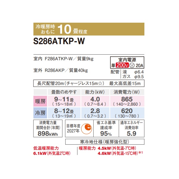 ダイキン S286ATKP-W エアコン 10畳 ルームエアコン KXシリーズ スゴ暖 単相200V 20A 10畳程度 ホワイト (S285ATKP-W 後継品) ♪