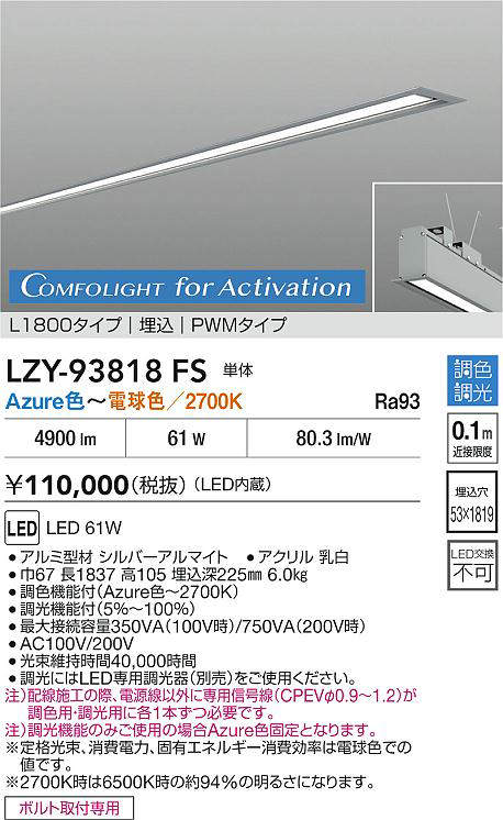 大光電機(DAIKO) LZY-93818FS ベースライト L1800タイプ 調光(調光器別売) 電源内蔵 Azure色〜電球色 LED 埋込形 シルバーアルマイト