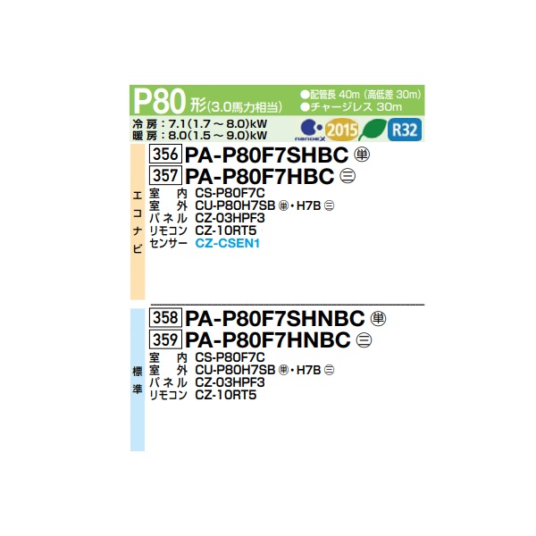 パナソニック PA-P80F7HBC 業務用エアコン 天井ビルトインカセット形 XEPHY Eco エコナビ シングル P80形 3.0馬力 三相200V ♪ [戻る]