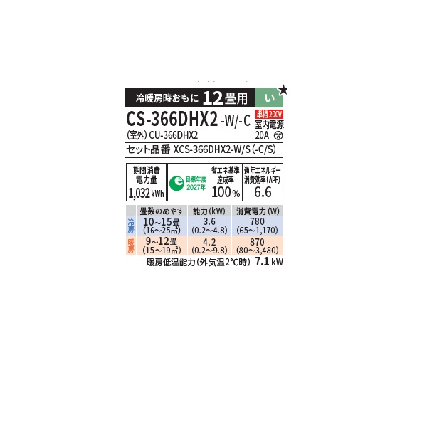 パナソニック CS-366DHX2-C エアコン 12畳 ルームエアコン HXシリーズ エオリア ナノイーX 単相200V 12畳程度 ノーブルベージュ (CS-365DHX2-Cの後継品)