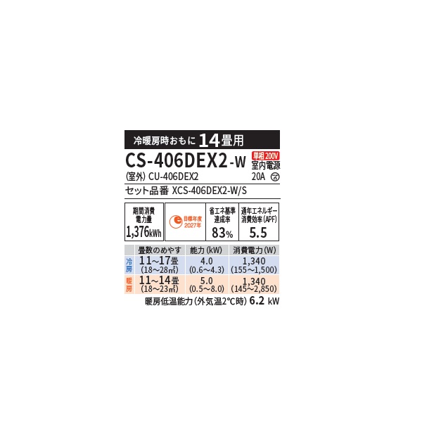 パナソニック CS-406DEX2-W エアコン 14畳 ルームエアコン EXシリーズ エオリア ナノイーX 単相200V 14畳程度 クリスタルホワイト (CS-405DEX2-Wの後継品)
