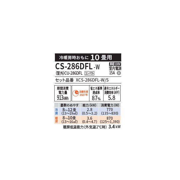 パナソニック CS-286DFL-W エアコン 10畳 ルームエアコン Fシリーズ エオリア 単相100V 10畳程度 クリスタルホワイト (CS-285DFL-Wの後継品)