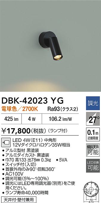 大光電機(DAIKO) DBK-42023YG スポットライト 調光(調光器別売) 電球色 LED ランプ付 ブラック