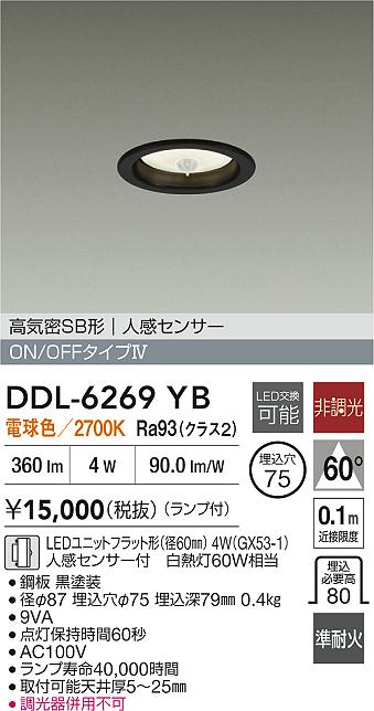 大光電機(DAIKO) DDL-6269YB ダウンライト 埋込穴φ75 非調光 電球色 LED ランプ付 高気密SB形 人感センサー ON/OFFタイプ ブラック