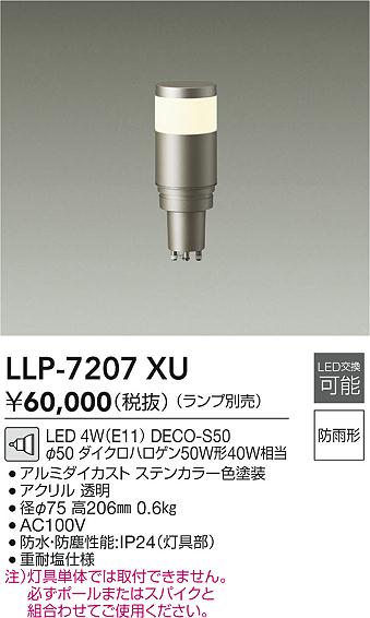 大光電機(DAIKO) LLP-7207XU アウトドアライト ポールライト ボラードライト 灯具本体 ランプ別売 ポール別売 防雨形 ステンカラー