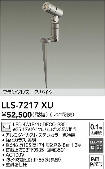 大光電機(DAIKO) LLS-7217XU アウトドアライト スポットライト スパイクタイプ ランプ別売 電源内蔵 防雨・防湿型 ステンカラー [戻る]