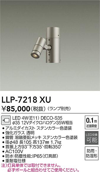 大光電機(DAIKO) LLP-7218XU アウトドアライト ポールスポットライト 灯具本体 1灯用 ランプ別売 ポール別売 電源内蔵 防雨・防湿型 ステンカラー [戻る]