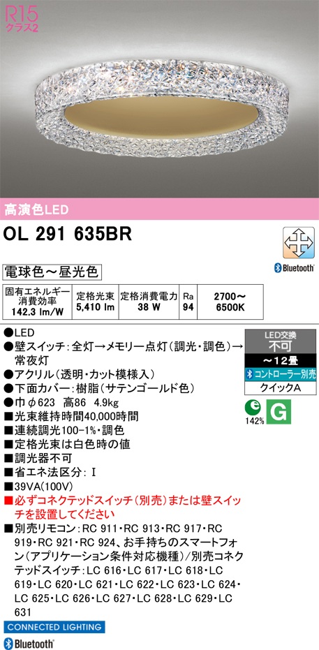 『在庫あり』 オーデリック OL291635BR シーリングライト 12畳 調光調色 Bluetooth リモコン別売 LED一体型 高演色LED サテンゴールド ☆