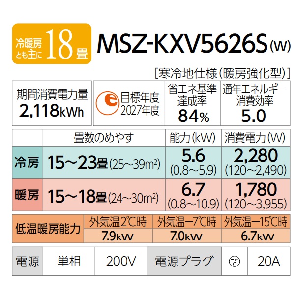 『在庫あり』 三菱 MSZ-KXV5626SW エアコン 18畳 ルームエアコン KXVシリーズ ズバ暖 寒冷地 単相200V/20A 18畳程度 ピュアホワイト MSZ-KXV5625S-W後継品 ☆2