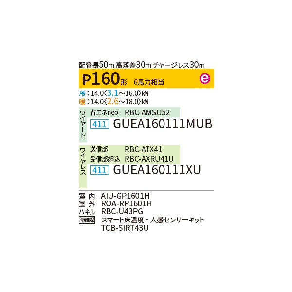 日本キヤリア/旧東芝 GUEA160111XU 業務用エアコン 天井カセット形 4方向吹出し スマートエコneo シングル P160 6馬力 三相200V ワイヤレス ♪∀