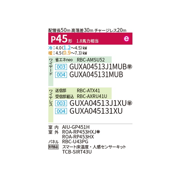 日本キヤリア/旧東芝 GUXA04513J1MUB 業務用エアコン 天井カセット形 4方向吹出し ウルトラパワーエコ シングル P45 1.8馬力 単相200V ワイヤード ♪