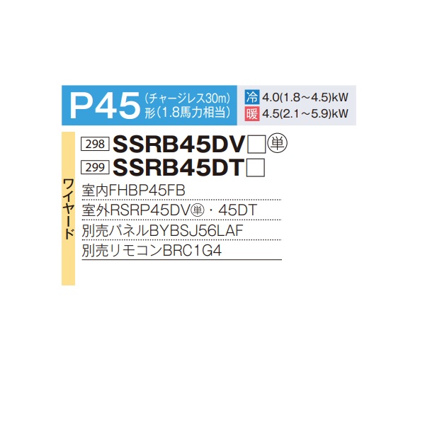 ダイキン SSRB45DV 業務用エアコン 天井埋込カセット形 ビルトインHi ペア FIVESTARZEAS P45形 1.8馬力 単相 ワイヤード ♪ [戻る]