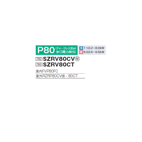 ダイキン SZRV80CV 業務用エアコン 床置形 ペア EcoZEAS P80形 3馬力 単相 ♪